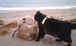 While I’m walking the beach I am constantly writing to you in my head.  A few days ago I found a beautiful cat on the beach complete with an l.e.d. blinking light, a reflective collar, and a string of bells. He was quite the hunter, crouching on his belly to stalk the sea gulls.  Pretty funny.  He was very playful and could jump up about two feet in the air.